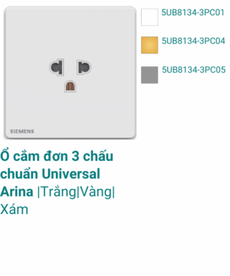 Ổ cắm đơn 3 chấu chuẩn Universal Arina